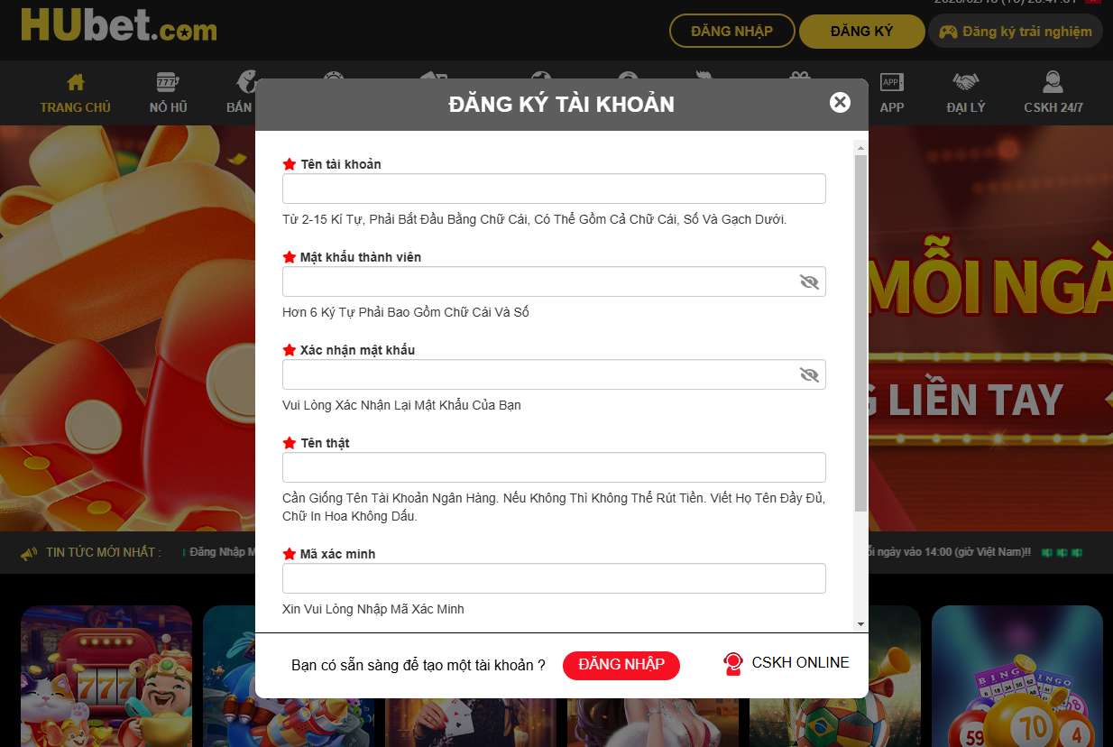 ĐĂNG KÝ HUBET6666 DỄ DÀNG & BẢO MẬT